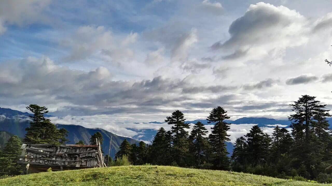 第二天我们收拾好东西向那龙虫草营地进发!我们走的不是一般的旅游徒步路线,那是当地藏民上山挖虫草走出的路,鲜有被外来旅人涉足。我们的目的地——那龙虫草营地,位于海拔4300,与瑞瓦村的直线距离很近,但是海拔落差有近两千米。 我们背着小包,其余的行李包括食物和睡袋等由骡马背上山,尽量减少登山负重。我们一行人行至海拔3000多米处,饱餐一顿稍作休息。考虑到自身身体情况,一部分同伴先行折返下山,上山分队继续往上爬。跟以往爬山不同,在这里爬一天山,感觉象过了四季,草甸、森林、杜鹃林,一层层给我们惊喜。上山过程中,兴奋之余,不时有“会当凌绝顶,一览众山小”的豪迈气魄,偶尔也体会到“坚持到底就是胜利”的成就感。越往上爬,一些同伴越来越感受到高反的考验:头痛、身体疲乏、气短、心跳加速……高反轻微的放慢行走速度,让身体逐渐适应;较严重走不动的,由骡马来背。一个不落下,一起登上营地终点。当我们抵达营地,才发现四周雪峰环抱,云雾中的卡瓦格博若隐若现,白马雪山、美拥达雪山、左贡雪山以及无数不知名的雪峰,每一座都熠熠生辉,跟山下是完全不同的世界,美如童话。一同伴的高反加重了,浑身没力、手脚变冷、吃过的晚饭也吐了,我们都很担心。山上夜晚气温低,我们安置她进木屋躺下,在屋里生起火堆,帮她盖上3个睡袋,还冲了些姜糖水喝下,一时之间也没见好转。向导们也过来探望,藏民大哥给了颗当地的药丸让她试试看。这药作用很强,同伴吞下后虽然还是感觉昏昏沉沉的,但总算是有惊无险度过了一晚,第二天醒来感觉好多了。