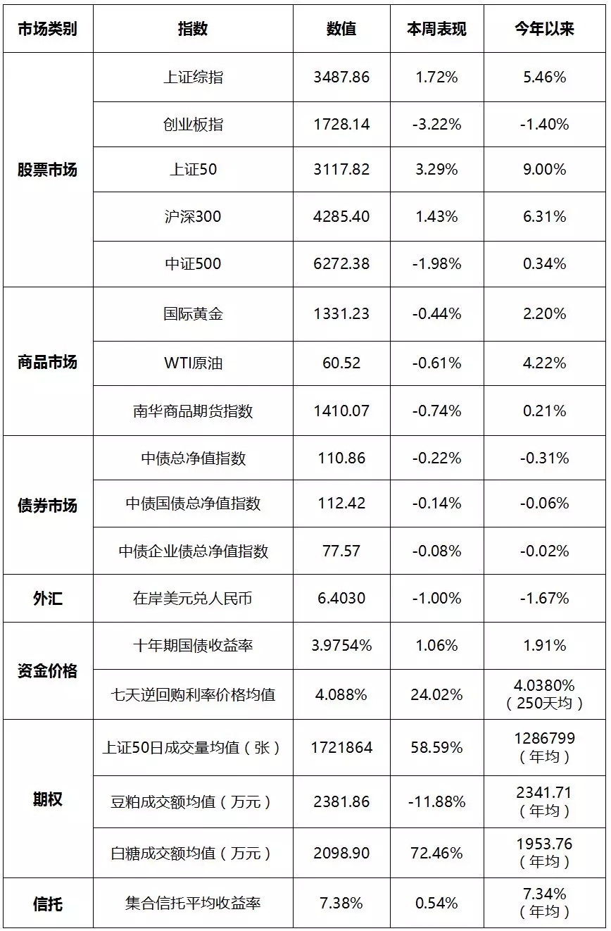 本周金融市场主要数据汇总: