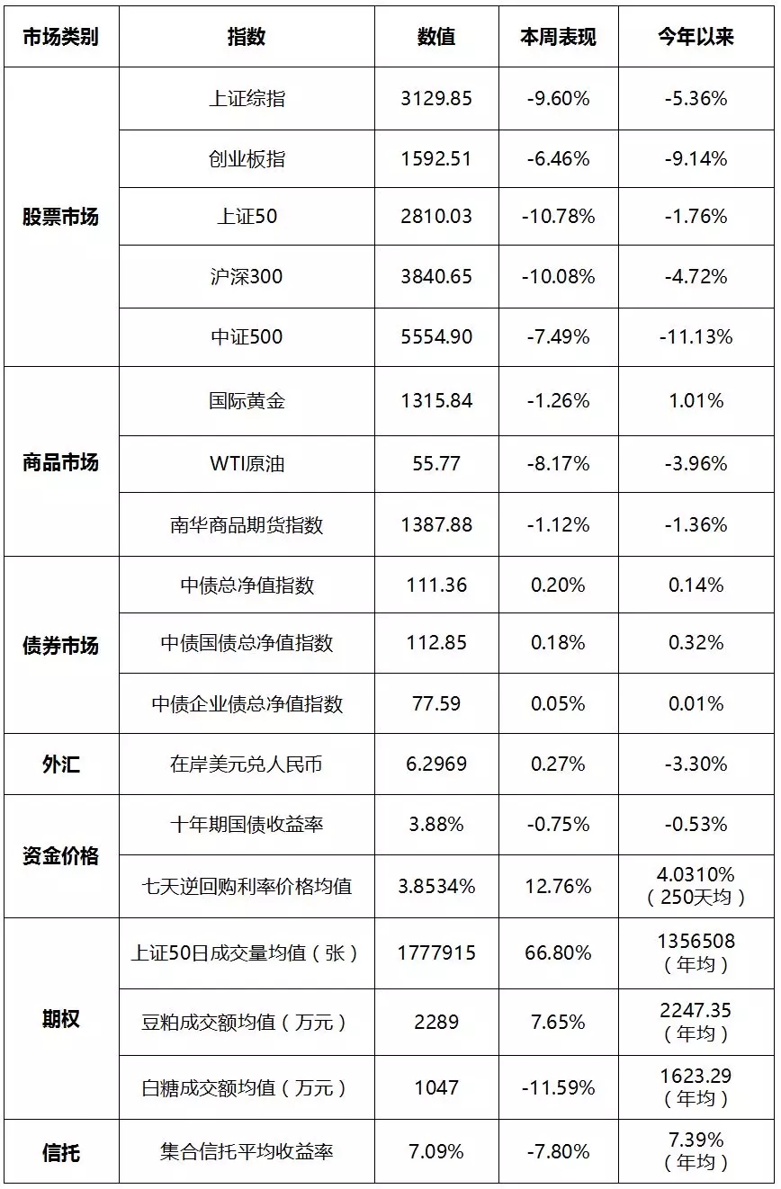 本周金融市场主要数据汇总: