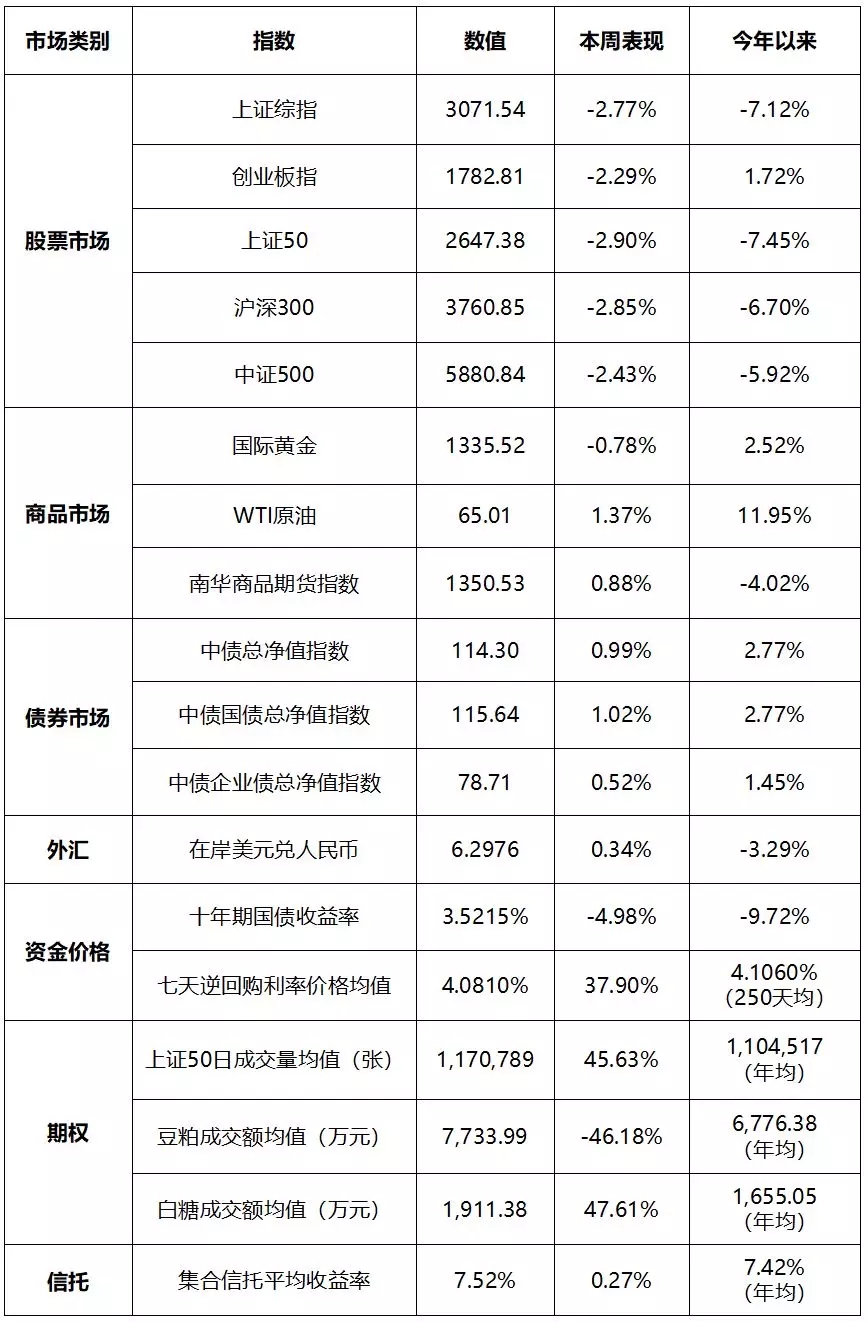近期,大宗商品领域消息频发,继早先中美贸易战引发市场动荡不安,随后美国财政部宣布对全球第二大铝供应商——俄罗斯铝业公司(Rusal)实施制裁,铝价飙升。由于除中国外,俄罗斯是全球最大铝供应国,俄电解铝产量约占全球7%,有分析机构预计此次制裁将会影响全球13%铝供应。由于俄铝持有俄另一大镍业采矿公司28%的股份,市场纷纷猜测美国下一步将对俄罗斯镍制裁,而2017年俄镍产量占全球供应约10%。受多重因素影响,近期有色金属表现强劲,各主力合约均大幅上涨,其中沪铝1806本周上涨3.17% ,沪镍1806本周上涨1.44% ,铝镍大涨带动其他有色金属上涨,主力合约中沪铜1805本周上涨1.94% ,沪银1805本周上涨3.02% 。受基本金属大涨推动, A股资源股表现强劲,中国铝业和云铝股份在19日封涨停板,截至周五收市中国铝业本周大幅上涨11.04%, 云铝股份大幅上涨9.46%。