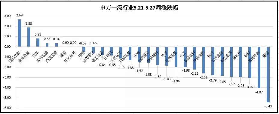 存量格局下,市场情绪对中美贸易谈判细节反应过度。20日,央视公众号发布“中美达成共识,不打贸易战”,并停止相互加征关税,市场高开高走,但随后受到上证50压制,市场总体稳定,从舆情来看,普遍认为是国家队压制短期情绪过热。22日,美国国会以压倒性多数投票通过一份修正案,以限制特朗普放松对中兴通讯制裁。受此消息影响,市场对中美贸易摩擦担忧再起,叠加24日特朗普发推宣布取消美朝会晤,市场情绪转头向下。我们认为,中美贸易和谈大的框架已定,即“不打贸易战”,接下来只是细节上的反复谈判博弈过程。目前看来,中国在谈判中并没有明显吃亏,市场预期过度悲观。股票市场本质上是分享优质上市公司的成长,中美贸易全面对抗可能性已经排除,剩下的仅仅是结构上如何分配蛋糕的细节,那么在谈判过程中部分行业可能受冲击或利好,各行业涨跌互现可以理解,目前市场普涨普跌的一致性情绪宣泄,体现了市场非理性的一面。后续我们将密切关注中兴通讯禁令解决情况,将此作为中美谈判标志性事件进行跟踪。