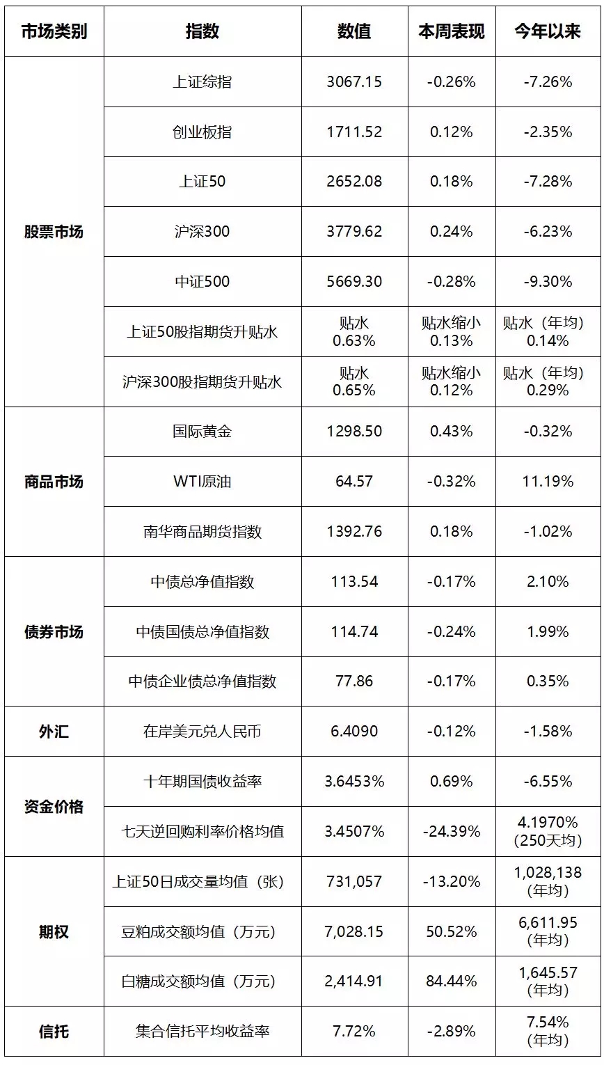 本周金融市场主要数据汇总: