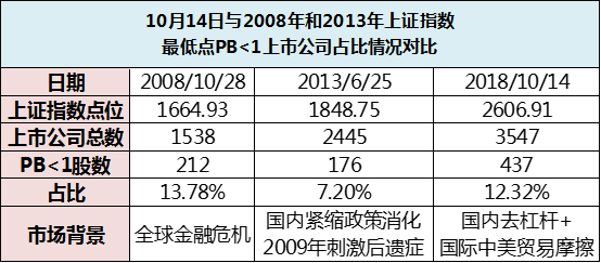 目前A股投资者整体迷茫,对利好钝化,对利空风声鹤唳,这正是A股处于熊市底部区域特征。每股股票对应的底层资产就是上市公司的净资产,我们统计了A股近十年来两次最低点时每股净资产低于1的上市公司占比情况。这样的图景表明A股处于底部区域,但底部区域并不代表就是最低点。