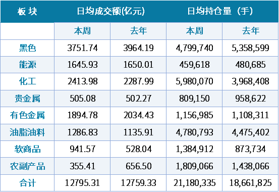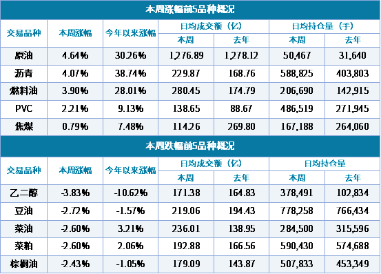 注:涨跌排序按周日均成交额百亿以上品种主力合约计算