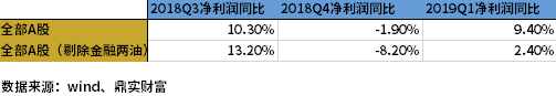 截至本周,全部A股2018年报及2019年一季报基本披露完毕。全部A股(全部A股剔除金融后)2018全年净利润同比增速-1.5%(-4.7%),2019Q1的增速则为9.4%(2.4%),较2018年底有较为明显的回升。其中,2018年Q4的商誉减值导致18年Q4净利润数据大幅跳水,2019Q1相对于去年Q4的实际改善力度并没有数据直观体现的那么大。分板块来看,主板、中小企业板、创业板2018全年净利润同比增速分别为3.4%、-31.7%、-65.6%,而三者2019Q1的净利润同比增速分别为11.9%、-3.6%、-13.3%,三个板块2019Q1盈利增速均实现触底回升,目前整体盈利底部的确认仍需等待未来Q2、Q3的数据才能进一步确认。但是,对于目前的A股来说,也许明确处于什么位置比猜测精准的基本面见底时间更重要。