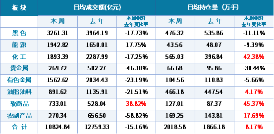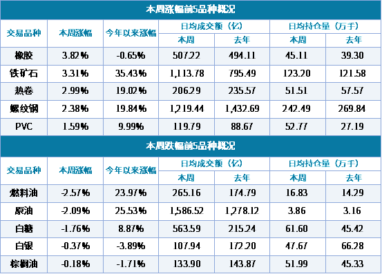注:涨跌排序按周日均成交额百亿以上品种主力合约计算
