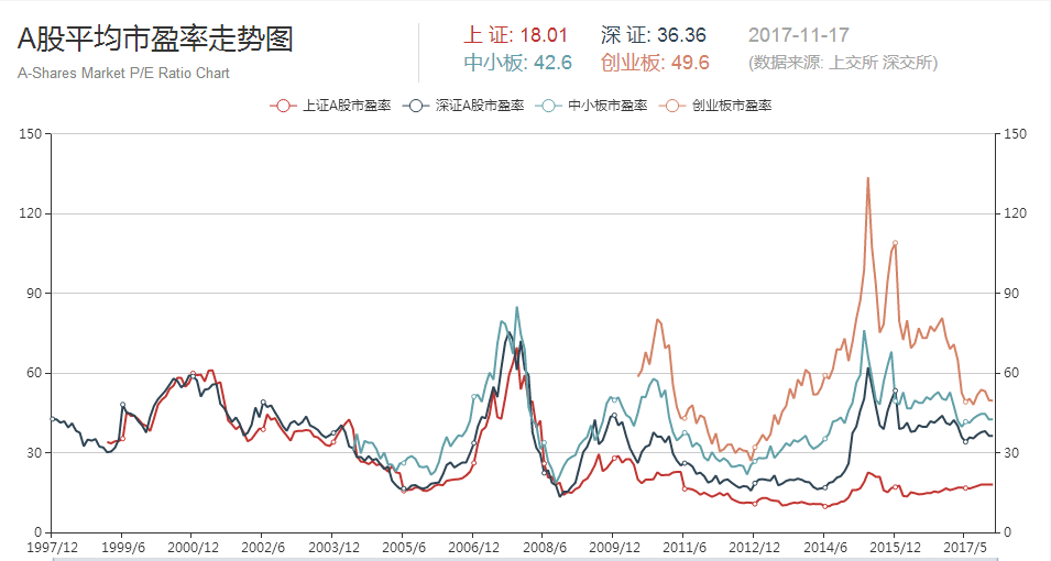 下图为A股整体市盈率长期走势: