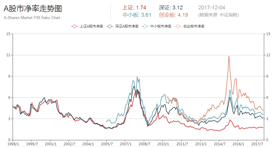 下图为A股整体市净率长期走势: