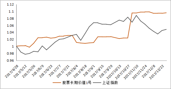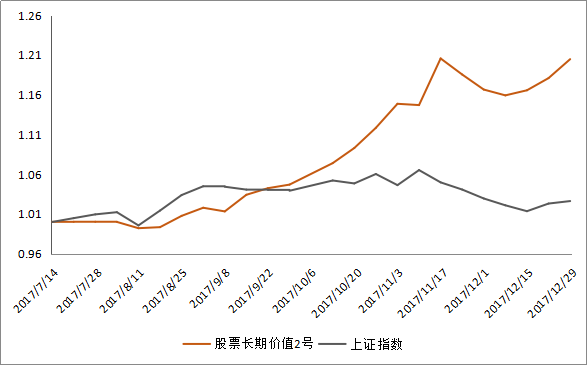 年末资金面紧张叠加公募基金锁定利润及资管新规的推出,股票市场12月份总体弱势震荡,市场分化明显,价值类个股继续强势而中小市值个股下跌,股票长期价值2号所选择标的均为具有良好成长性的价值类个股,在这波下跌中回撤控制良好,且在本月收复了之前的回撤幅度,表现优异。