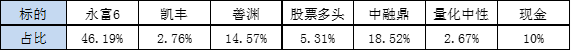 鼎实FOF系列本月上涨约4.2%。鼎实FOF中8月末最新的策略占比为: