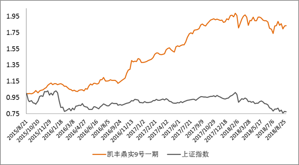 截止8月31日,凯丰鼎实9号一期的净值为1.8359,下跌2.83%,报告期内凯丰变化不大,股票仓位约60%,商品市场对产品贡献了部分收益,但是股票市场因为仓位较重,最终产品的收益为负。