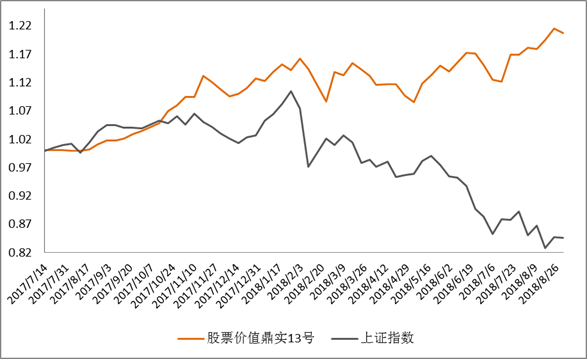 股票价值鼎实13号定位于在股票市场估值较低时重仓配置股票市场中具备强大选股能力的投顾,赚取较好收益,在股票市场低迷或震荡期间适当配置一些交易型的投顾,为产品增厚收益,现阶段受外部中美贸易摩擦以及内部金融去杠杆影响,股票市场风险偏好下降,不确定因素增多,我们目前也在积极做出一些变化来应对这种情况,产品目前多头的配置比例较低,整体的风险较为可控。