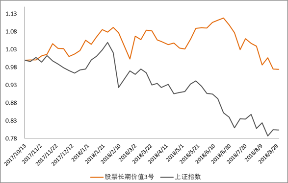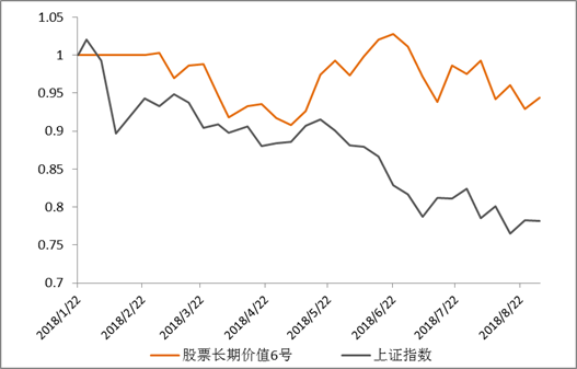 截止8月31日,股票长期价值6号净值为0.9751,回撤3.17%,主要是投向景林资产蒋锦志所管理的产品,另在产品成立初期配了约10%的资金在某商品领域投顾,报告期内景林所管理产品回撤较大,但是因为商品投顾大幅上涨,整体的净值回撤幅度较低。