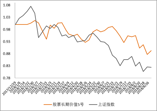 截止8月31日,股票长期价值5号净值为0.8926,下跌6.05%,产品中约51%配置了高毅邓晓峰所管理的产品,另有约46%配置了景林蒋锦志所管理的产品,报告期内邓晓峰所管理的产品回撤3.93%,蒋锦志所管理的产品回撤7.47%,由于蒋锦志所管理的产品仓位较高,因此波动性也会较邓晓峰所管理的产品大。