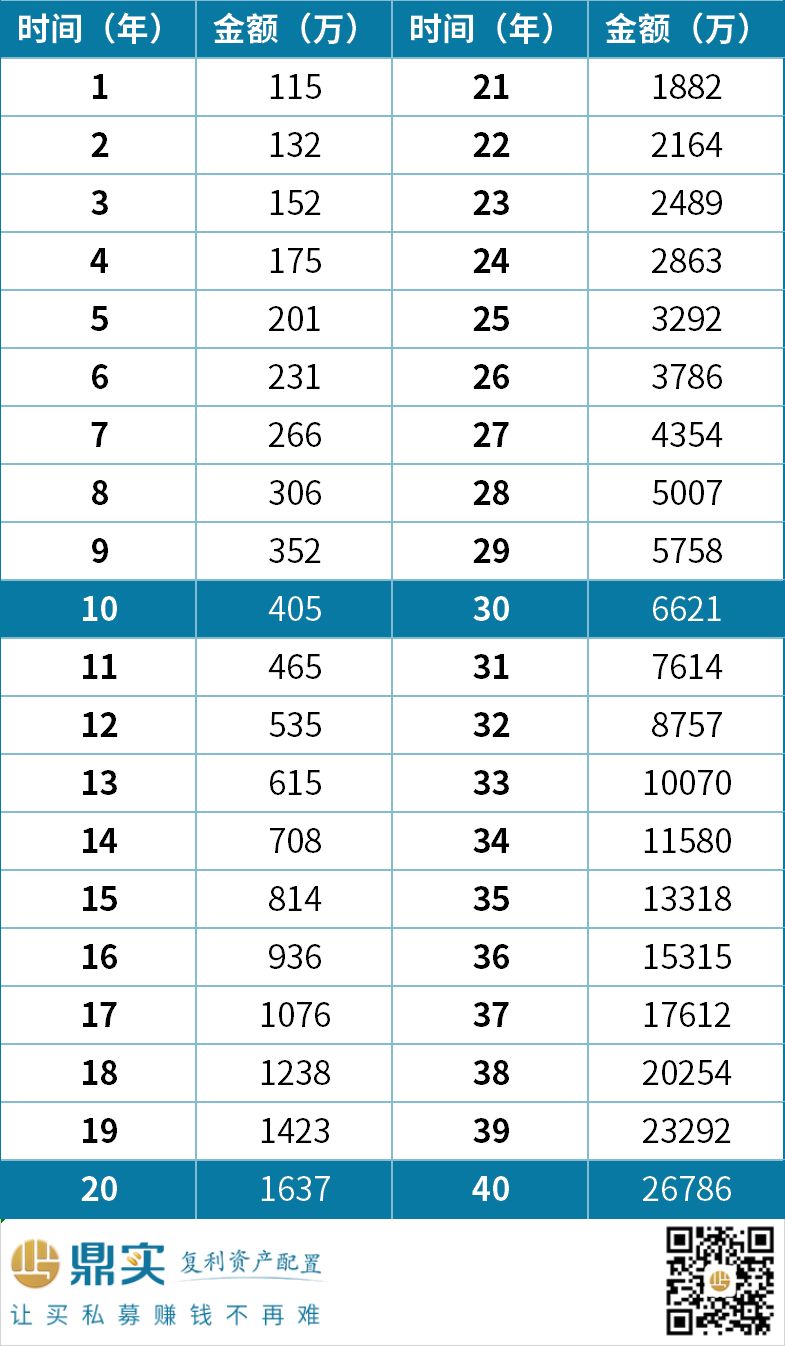假设初始本金是100万,保持年化复利15%,